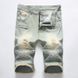 2018 New Trend Locomotive Pleated Ripped Denim Shorts Men's Pocket Zipper Straight Five-point Pants Medium Pants