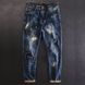2023 Spring And Autumn New Style D2 Trendy Men's Washed Frayed Hole Patch Paint Elastic Slim Straight Blue Jeans For Men