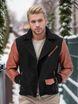 2024 New Foreign Trade PU Leather Patchwork Woolen Men's Jacket With Turn-down Collar And Color Block Zipper Coat