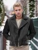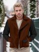 2024 New Foreign Trade PU Leather Patchwork Woolen Men's Jacket with Turn-down Collar and Color Block Zipper Coat
