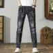 2024 New In Stock Trendy Brand Fashion Personality Heavy Craft Leather Brand Decoration Patchwork Frayed Black Stretchy Long Pants for Men