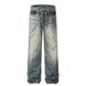 2025 New American Style Chain Print Loose Straight Washed Ink Splash Dirty Wide-Leg Casual Jeans
