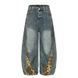 2025 New American Style Leopard Print Patchwork Scimitar Jeans For Women Cleanfit Loose Hot Girl Floor-Length Pants