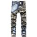 2025 New Jeans Men's Slim-fit Elastic Camouflage Splicing Color Men's Small-footed Jeans Tide