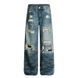 2025 New Men And Women Ripped Distressed Washed Blue Wide-Leg Scimitar Baggy Jeans