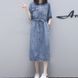 2025 spring/summer new mid length denim dress with knee and waist cinching for slimming effect, women's casual denim dress trend