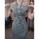 2025 Summer Internet Celebrity New Chinese Style Cowboy Dress for Women with a High Grade Feeling, Heavy duty Lace Splicing to Show Thinning, Split Skirt