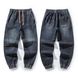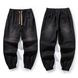 2026 American Retro Jeans Men's Autumn And Winter Loose Trendy Brand Elastic Waist Tied Feet Trendy Casual Tooling Thick Pants
