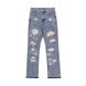 2026 European-USA Style High Street Hip-Hop Fashion Jeans Youth/Men Cotton Mid Waist Embroidery Patch Broken Hole Straight Type Cowboy Pants