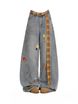 American Cartoon Towel Embroidery Jeans For Women, Spring And Autumn Design, High Waist, Loose Wide Leg Scimitar Pants