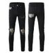 American High Street Black Men's Cross-border Jeans Slim-fit Ripped Leopard Print Patch Elastic Trendy Men's Clothing