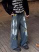 American High Street Design Graffiti Jeans Men's Trendy Brand Niche Vintage Washed Ink Splash Loose Wide-Leg Pants