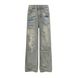 American High Street Design Sense Washed Ripped Jeans Men's Loose Straight Trendy Brand Fried Street Beggar Micro-pull Pants