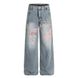 American High Street Graffiti Letter Print Washed Denim Wide-Leg Men's Punk Vibe Trend Loose Straight Long Pants