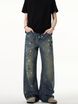 American High Street Tie-Dye Ink-Splattered Jeans For Men Women, Washed And Distressed, Loose Straight-Leg Casual