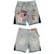 American Patchwork Denim Shorts Y2K Jeans Men Hip Hop Cartoon Pattern Embroidery Retro Blue Loose Denim Fitness Casual Shorts