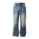 American Retro Dark Blue Lightning Cracked Jeans For Men And Women Loose Wide Leg Pants Washed Straight Flared Pants
