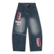 American Street Style Scimitar Silhouette Jeans Men's Trendy Color Block Patchwork Letter Print Loose Casual Cargo Pants