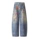 American Style 3D Digital Print Bear Chain Jeans For Men And Women, Designed Washed Wide-Leg Couple Straight Pants