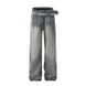American Style Cleanfit Belt Design Wide-Leg Jeans Unisex High Street Loose Straight Vibe Floor-Length Pants