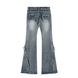 American Style Frayed Edge Jeans Hot Girl Design Low Waist Slim Fit Flared Pants