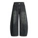 American Style Leopard Print Scimitar Jeans Men's High Street Vibe Trendy Washed Vintage Loose Fit Wide Leg Pants