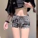 【Unshipped Instant Refund】American Niche Hot Girl Low Waist Denim Ultra Short Pants Women Summer New Design Sense Printed Slim Hot Pants