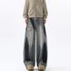 American Style Splashed Ink Ripped Curved Knife Jeans For Men In Autumn, Loose And Trendy Design, Wide Leg Slightly