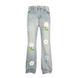 American Style Vibe Flared Floral Embroidered Jeans Trendy Brand Light Blue Street Cleanfit Unisex Floor-Length Pants