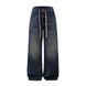 American Style Vintage Washed Denim Pants Men's Casual Loose Wide-Leg Drawstring Tie Casual Straight Pants Trendy