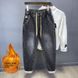 Autumn Winter New Drawstring Elastic Waist Jeans Fleece Lined 2025 Trendy Loose Fit Skinny Harem Casual Stretch Pants