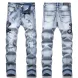 Blue Eyed Snake Embroidery Street Style Jeans For Teenagers Elastic Waist Cotton Material Casual Scene Suitable