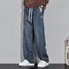 Blue jeans men's spring and summer trendy brand washed distressed wide leg pants for teenagers, loose straight leg ins long pants