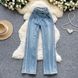 "Bohemian Lace-Trimmed Denim Jeans - Light Wash Straight Leg Pants With Feminine Edge, Comfortable & Breathable For Summer"
