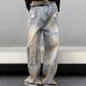 American Retro Washed Distressed Wide-Leg Loose Straight Hand-Dyed Yellow Mud Jeans for Men Tie-Dye Long Pants