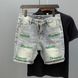 Trendy Brand Personalized Green Letter Embroidered Cowboy Shorts for Men in 2024 Summer, Thin Style, Trendy and Handsome, Slim Fit Five Part Pants