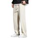Men Casual Pants Solid Color Drawstring Elastic Waist Loose Fit Long Trousers Streetwear Straight Wide Leg Pants Casual Sports Long Pants Male Garment