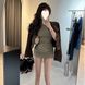 2025 Autumn New American Retro Short Denim Jacket + High Collar Ruched Bodycon Dress Two-Piece Set for Women