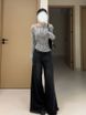 Korean Retro Soft Lazy Style Top Design Sense Niche Gray Knitted Shirt Women's Jeans Set
