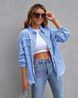 Chicco Cross-Border New European And American Style Solid Color Loose Fit Jacket Ripped Long Sleeve Women's Denim Shirt