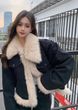 Chicco Japanese Retro Denim Jacket For Women, Autumn 2025 New Design, Lamb Wool Casual Winter Cotton Coat
