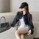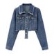 Spring and Autumn New Style Hong Kong Style Loose Slimming Versatile Long Sleeve Top Short Drawstring Denim Jacket Women's Clothing