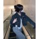 Chicco Spring And Autumn New Hong Kong Style Loose Slimming Versatile Long Sleeve Top Short Drawstring Denim Jacket Women's