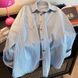 Vintage Distressed Blue and White Striped Long Sleeve Denim Shirt for Women, Autumn 2024 New Design with Colorful Button Turn-down Collar Shirt
