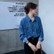 Vintage Hong Kong Style Denim Shirt for Women 2025 Loose Design Sense Niche Top Polo Collar Autumn Shirt for Women