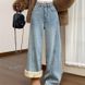 Clair Autumn Winter Fleece Lined Thickened Scimitar Wide Leg Jeans For Women High Waist Slimming Straight Floor-Length Pants