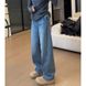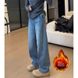 Clair Clair Blue Scimitar Spliced Jeans 2025 Autumn New High Waist Slimming Wide Leg Long Pants With Fleece For Plus Size Women