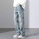 Cleanfit Straight Leg Jeans For Men - Vintage Washed Denim Pants, High Street Casual Trousers, Slim Fit, Mid Rise, Classic Black/Blue/Yellow