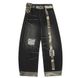 Color Block Patchwork Distressed Denim Scimitar Pants Men's High Street Trendy Vibe with Belt Loose Wide-Leg Trousers
