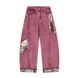 Color Block Patchwork Scimitar Jeans for Men Loose High Street Ins Trendy Brand Cool Washed Wide Leg Long Pants